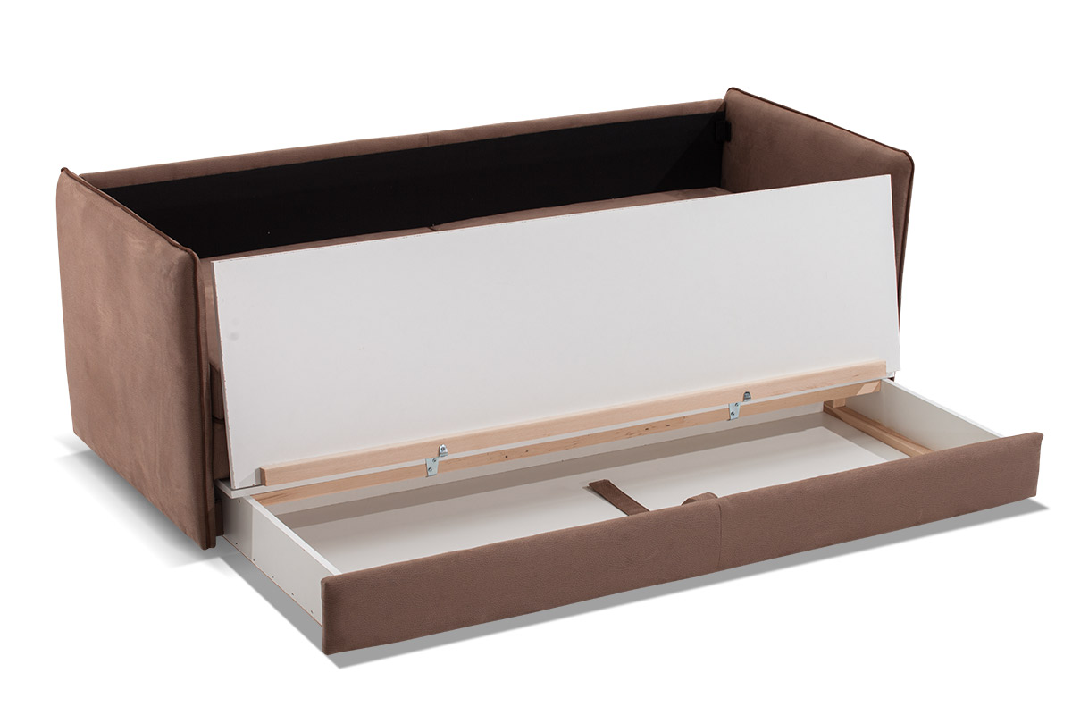 Ležaj modernog dizajna.Veoma udoban sedeći deo. Veliki izbor materijala.Drvena konstrukcija omogućava čvrstoću i dugotrajnost.Ležaj poseduje ostavu za odlaganje.