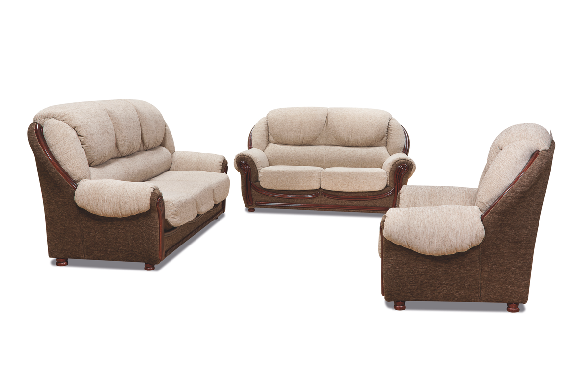 Garnitura klasičnog dizajna, sa plastičnim nogarima u crnoj boji. Sastoji se iz kompleta trosed, dvosed i fotelja. Postoji mogućnost kupovine zasebnih elemenata, kao i kombinacije boja, dezena i materijala. Veoma udobna, sedeći deo urađen od poliuretanske pene koja povećava osećaj udobnosti. Drvena konstrukcija omogućava čvrstoću i dugotrajnost.